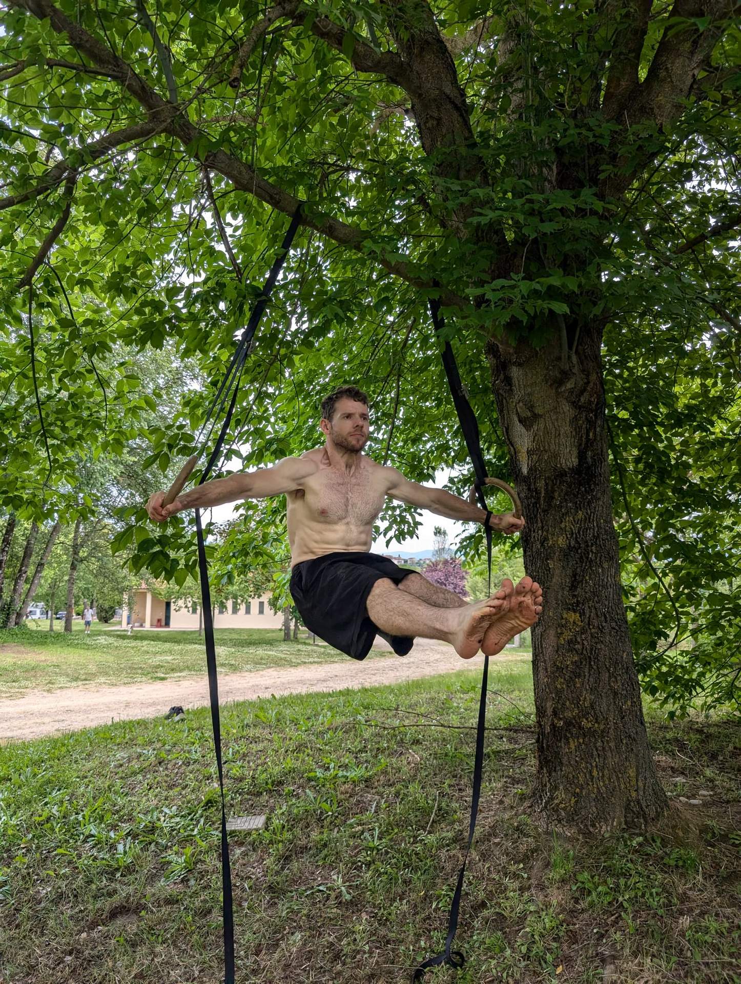 Mein Weg hat mich von den ersten Klimmzügen und Liegestützen bis hin zu Skills wie dem Front Lever oder dem Iron Cross geführt – Fähigkeiten, auf die ich stolz bin, weil sie das Ergebnis von Ausdauer, Geduld und Freude am Training sind.